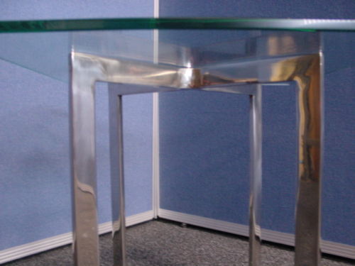 Top measures 20 inches (500mm) square and is 12mm thick with a polished bevelled edge.