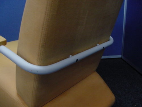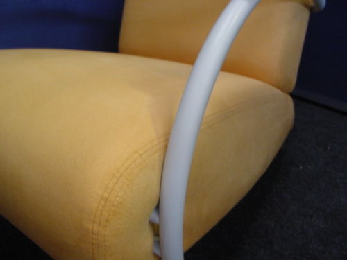Finished in yellow suade on a solid beech wood frame construction with a hooped steel support.