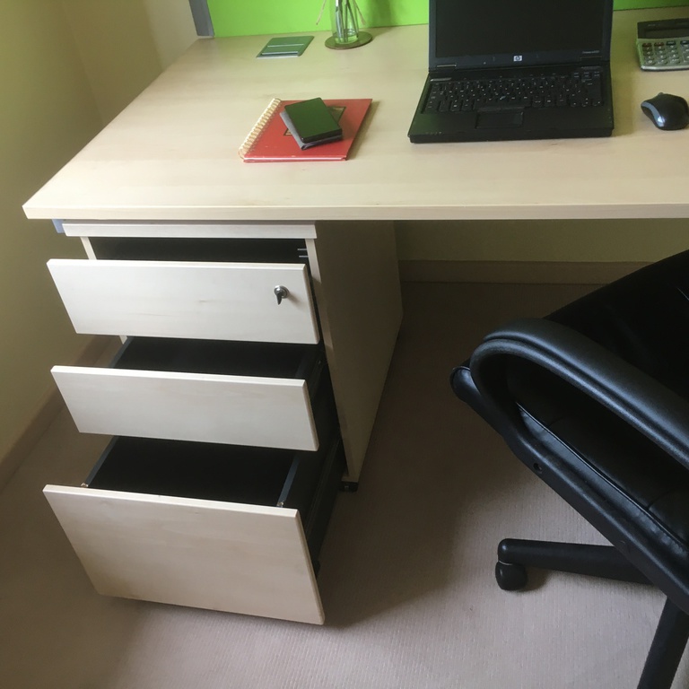 Matching 3 drawer mobile pedestal on castors 2 shallow and 1 filing drawer.